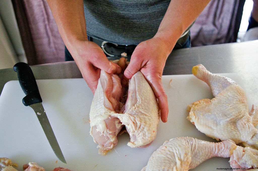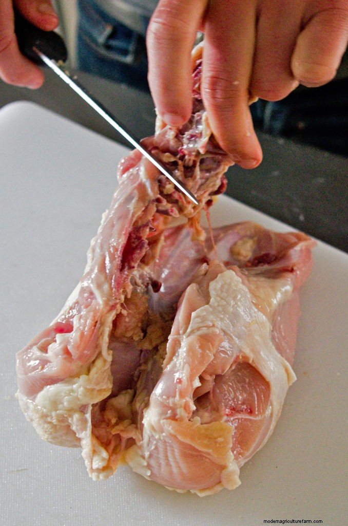 You’ll be left with breast meat that has ribs attached. You can remove the ribs by hand if you like, or use your boning knife to separate them from the back of the breast muscles.