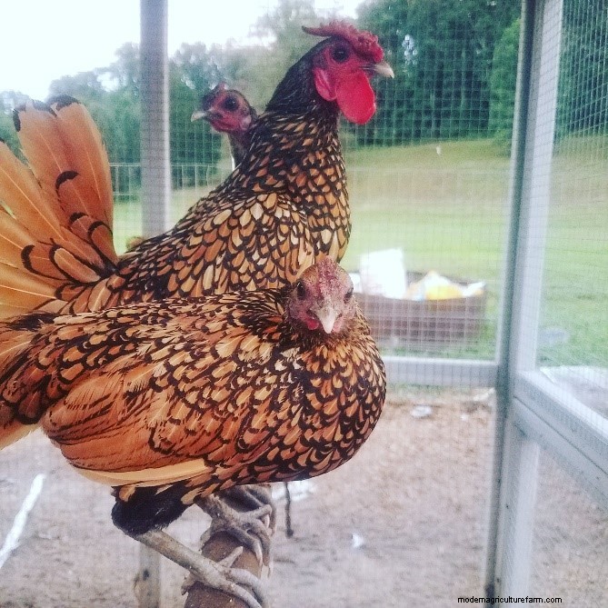 Silver- and gold-laced Sebright chickens. Photo by author.