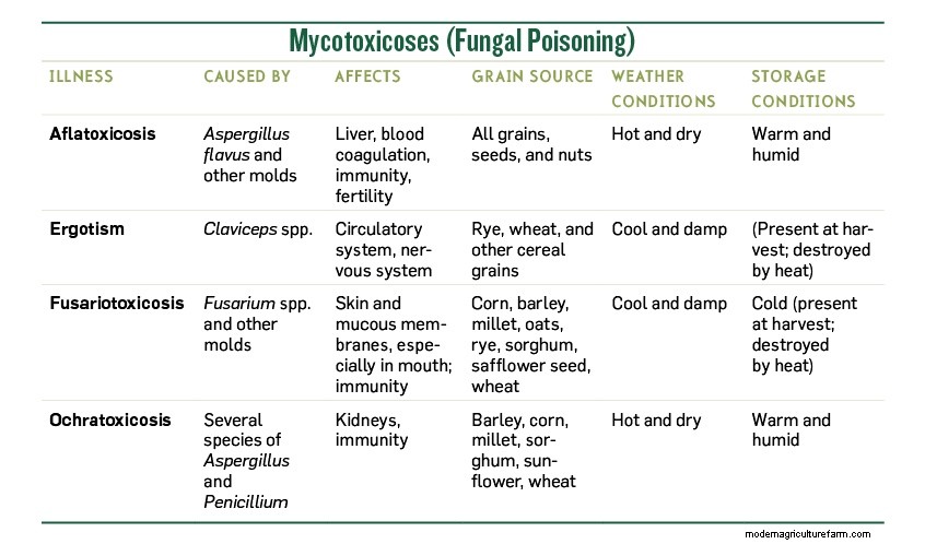 - By the time signs appear, the mold-contaminated feed or litter may have been used up or replaced, making a positive identification of a toxin impossible.