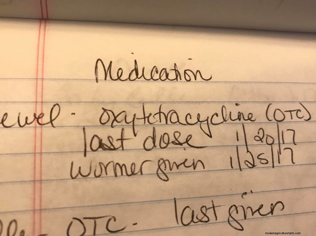 I don’t do a whole lot of medicating in my flock, but I have given antibiotics when I’ve had a sick chicken. Writing down what I gave and when I gave it helps keep track of doses.