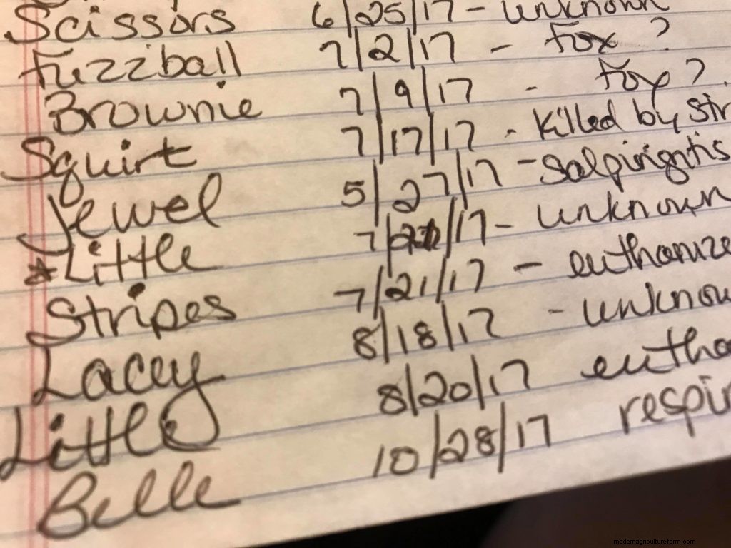 Whether from accident, illness or age, death is going to happen in your flock. Keeping track of deaths can help you notice trends and take steps to change them.