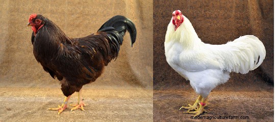 Buckeye and Chantecler roosters. Photos courtesy of the Livestock Conservancy.