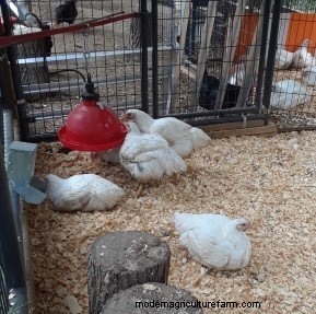 Deep litter, auto waterer, pre-calculated food needs, snap together fencing, planning ahead – all make for just a few, quick chores each day to raise enough broilers in 16 weeks to feed your family for the year.