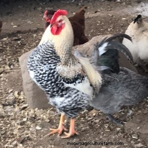 Right now I have four roosters. One bantam cochin named Oreo who is four years old and my daughter’s pet. He’s also shorter than everyone else and isn’t really a successful breeder because of it. We can rule him out of the breeding equation..