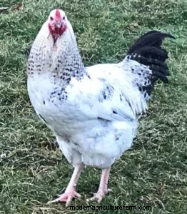 Becky here is a beautiful Australorp cross that has a nice small comb. She’s also smaller overall than the typical Australorp.