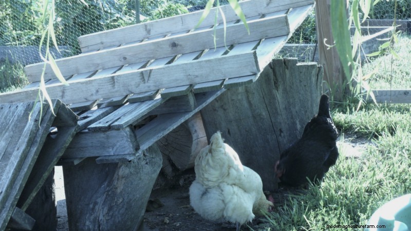 To deter overhead predators, consider either a covered run, or a partially covered area where chickens can seek shelter fast. I have a large, enclosed, covered pen, and when I let them out, they are in a fenced but uncovered area. Here, I’ve hung lightweight aviary netting over part of the area they like to dust bathe in, as well as propped up pallets for emergency cover. At night, when the hens go to roost, I lock the outside run door, keeping them securely in their coop. The coop also has a secure door; I keep it open in the hot summer months for air, but I have a secured trap door that shuts the front pen off from the larger open area. Many mornings I’ve come out to find raccoon tracks and claw marks around their door, but I’m confident they are secure as they can be. It’s a fortress.