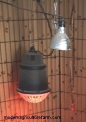 The day before the Cornish Cross chicks arrive, I get the brooder set up and working. I test the brooder lamps, replace bulbs if necessary, make sure the heat holds at a constant 100 degrees Fahrenheit, and hang a 5-1/2-inch lamp with a 4-watt LED night light to provide illumination over the feeder and drinkers. I empty 50 pounds of starter feed (unmedicated) into a galvanized can (protects against rodents and insects) and place it near the brooder. Then, I fill the drinker, which is supplemented with electrolytes, vitamins, and minerals. Finally, I fill the feeder. All is readied for the chicks.