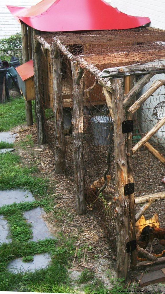 We wanted a rustic look for our hen habitat, so we used unpeeled eastern red cedar logs. I picked up the cedar at a lumber yard out in the boondocks. Depending on your location, you may be able to get redwood, cypress, black locust, or white cedar posts, which are all naturally rot-resistant woods. Depending on conditions, these posts will last from 15 to 25 years. The drier your weather, the longer they’ll last. Choose the posts with the most heartwood; they’ll last longer. Post with lots of light-colored sapwood will rot away in a few years.