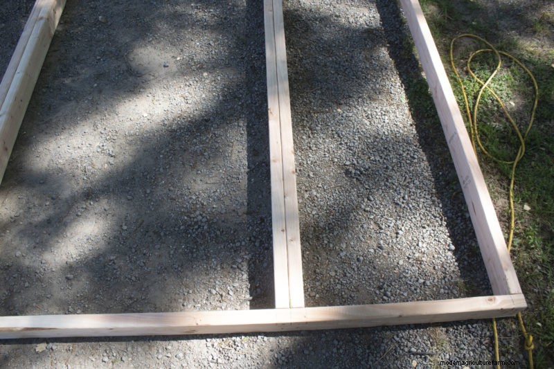 After laying out the frame, we then determined where the joists will connect with the frame. We marked those areas with a pen, which allowed us to make sure each measurement was right. It also allowed for faster assembly. This is the foundation of the coop, so it’s important to get it right.