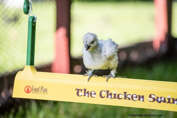 The perch you use for the swing should also have enough grip and be wide enough that a chicken can easily stand and grip the perch. Slippery or thin perches don’t work well for swinging.
