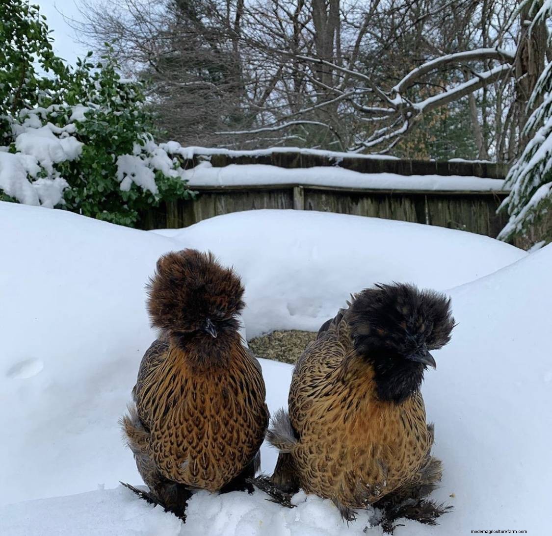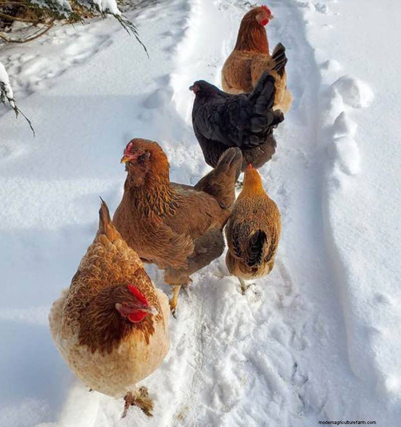 If it snows where you live, you may need to shovel snow in their run. Or, if they free-range, you will need to shovel snow to create a path for the chickens, and create a snow-free hang-out area for them. The chickens will need a snow-free area to roam and exercise to prevent boredom and depression amidst winter gloom. If they walk on ice and snow, they could end up with frostbite on their feet.