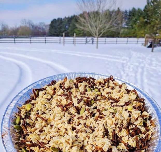 We can spoil our feathered family with healthy snacks they love. Below are some things we like to spoil them with during the winter. They’re all served warm, but not too warm (because we don’t want them to burn themselves as they gobble it up!).