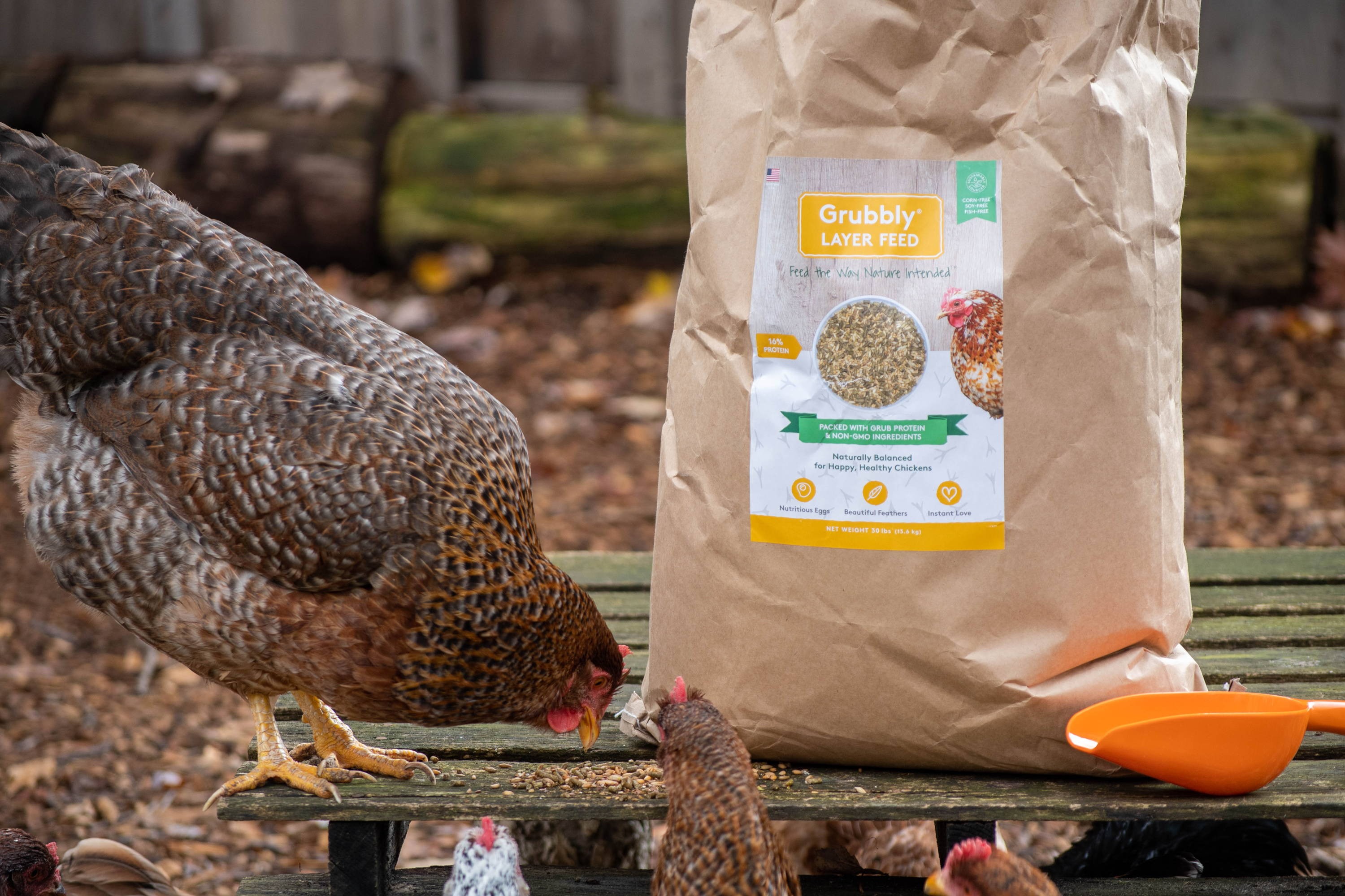 A pellet and whole grain combo feed is also a great choice. The chickens can still customize their diet by consuming certain whole grains, but when they consume the pellets, they are still getting the essential nutrition that they need on a daily basis. Grubbly Fresh Pecks is a great option for the daily ration in your flock’s winter diet since it's a combination of whole grains and pellets. It is also an insect-based poultry feed. Rather than using fish or soy, Grubbly Fresh Pecks contains both insect and plant protein, inspired by a chicken's natural diet.