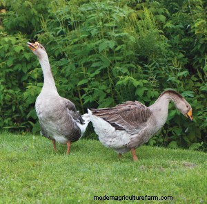 If you are worried about potential conflict, you can select certain breeds of geese, which are more docile, such as Pilgrims, Embdens and Sebastapols. For some farmers, the volume and attitude associated with aggressive geese are actually preferred, because geese make fantastic guard animals. They are not easily deterred by bribes, as dogs often are, and their eyesight is incredibly keen. Their trademark honk cannot be mistaken for anything else. When you know your goose well, you’ll be able to discern a casual call from an alarming one.