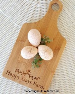 These wild girls amazed us. They had been in a small pen with several other turkeys and very limited human contact. They calmed down immediately and started eating out of our hands within two days. What really amazed us was the fact that they started to lay eggs for us immediately. These big, beautiful, speckled turkey eggs are so delicious! They are about the same size as a duck egg and have a wonderfully large yolk inside.