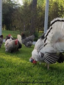 As with any poultry, we decided to quarantine our Royal Palm turkeys, just to make sure they were healthy before they had any contact with our flock. Just a few issues that we are concerned with are respiratory diseases, coccidiosis and lice/mites. We immediately added diatomaceous earth, probiotics, and garlic to their feed, as well as apple cider vinegar to their waterers.