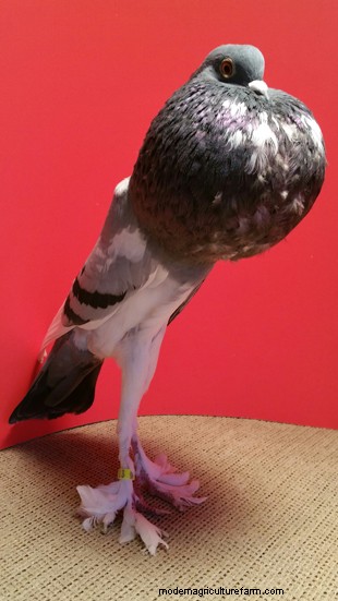 There are several breeds and types of pigeons, but if there were ever a supermodel pigeon, the English Pouter would be stomping down the runway during fashion week. Homing pigeons, of course, would be the nerds — calculating and compassing their way home with precession. Pouters have endlessly long legs, voluptuous crops (or globes), stand tall, and do not merely strut about in the loft, but saunter. They put the bass in their walk, as they project an attitude of utmost confidence as they take long strides, placing one foot in front of the other.
