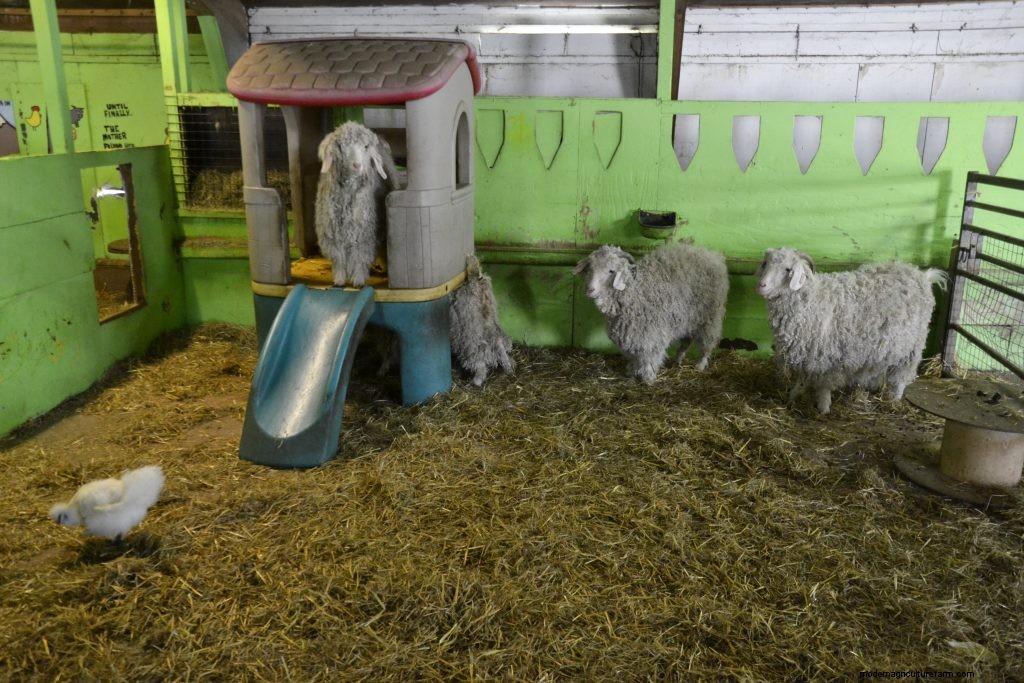Anthony then showed us the education room. We saw Donald Trump the guinea pig, with his shaggy blond locks, and said hello to a pedigreed Boer goat. A hen roamed free in the barn, interacting with the Angora goats, and a collection of pigs and rabbits.