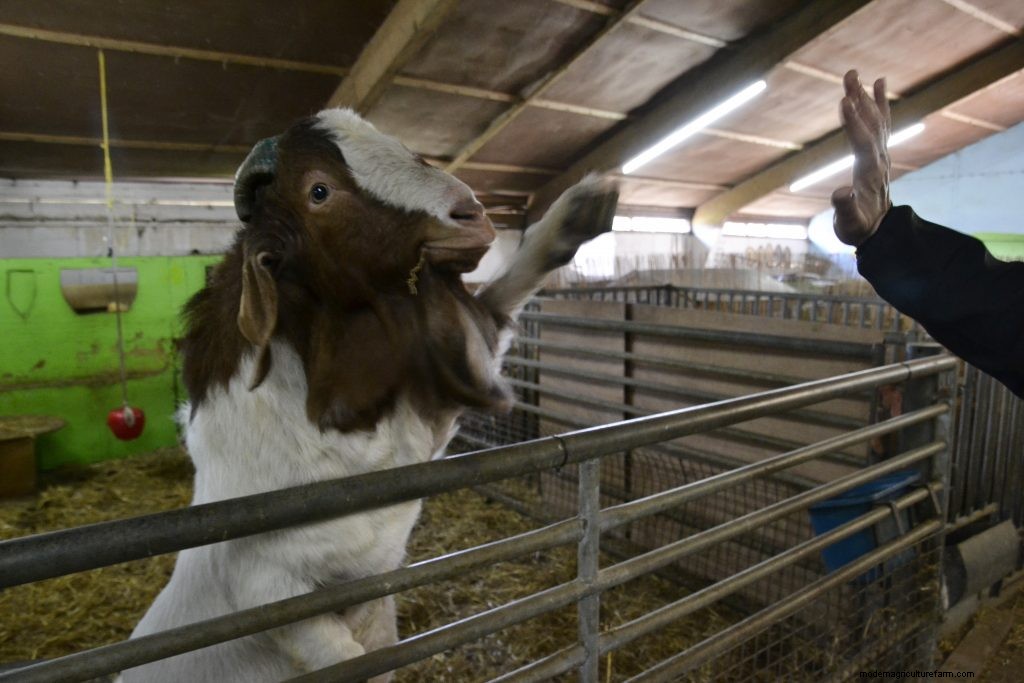 We went inside to see the new baby goats, who are running around, full of life. Anthony picked one up and it’s clear they’re already well socialized and used to being handled. “We handle them from birth, so they get used to it, and they enjoy all the attention,” he explained.