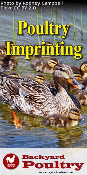Despite the protection we provide on the farm, poultry parents and young still retain these instincts. Indeed, maternal care is still invaluable when you raise free-range chickens or other poultry. The mother defends her young and leads them to safety. She shows them how to forage and roost. She encourages their choice of foodstuff and warns them what not to feed on. From her and the flock, youngsters learn appropriate social behavior and communication skills. They learn how to identify potential mates. Therefore, it is important for a chick to imprint on an appropriate mother figure.