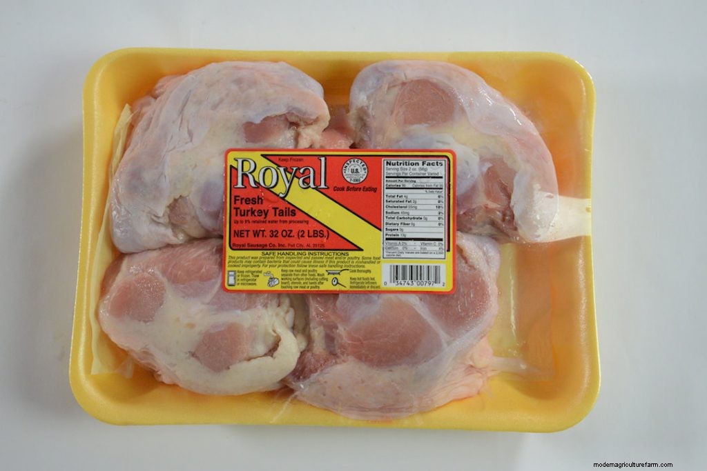 After World War II the U.S. poultry industry was raising turkeys in excess. Producers foresaw Americans not enjoying turkey tail meat and started chopping it off prior to sale. Around the ‘50s and up until today, the trend of favoring white meat over dark meat prevailed. If turkey tails were offered, they probably would not have been favored. Turkey tail meat is dark and not technically the tail. It is the part that connects the showy feathers and houses the oil-preening gland. The meat industry, who were now amassing turkey tails saw a way to make a profit on a byproduct — exportation.