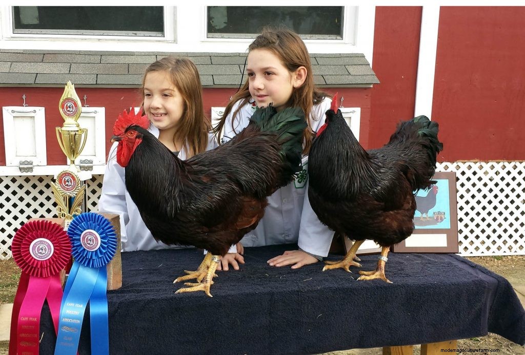They show poultry in several local and state shows. Children five to nine years old enter the Peewee Class, showing their birds and being examined by judges for showmanship.
