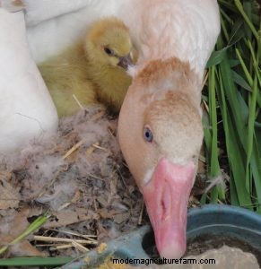 Like all geese, medium geese mate for the duration, which may well be for life. They love raising a family and, especially Sebastopol geese, will happily adopt youngsters of other species. Give them a place to nest and you will have years of happy families. Geese are long lived in good circumstance, living more than 20 years.