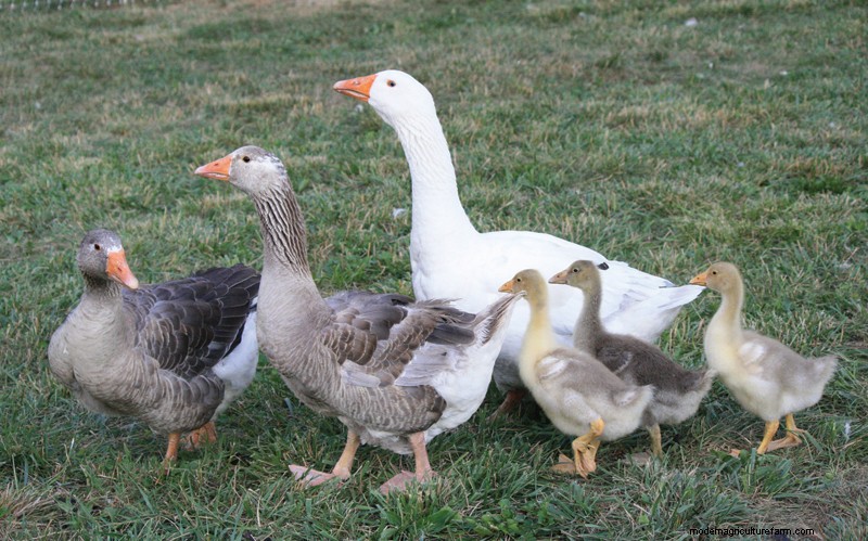 Lyn Irvine says, in her 1961 book, Field with Geese, “No other creature so rapidly turns grass into flesh—the commonest weed into the most coveted food.” They can be turned out in fields after harvest to glean and clean. They are vegetarians and may look with disdain, as only a dignified goose can, on the relish with which ducks devour insects and snails.
