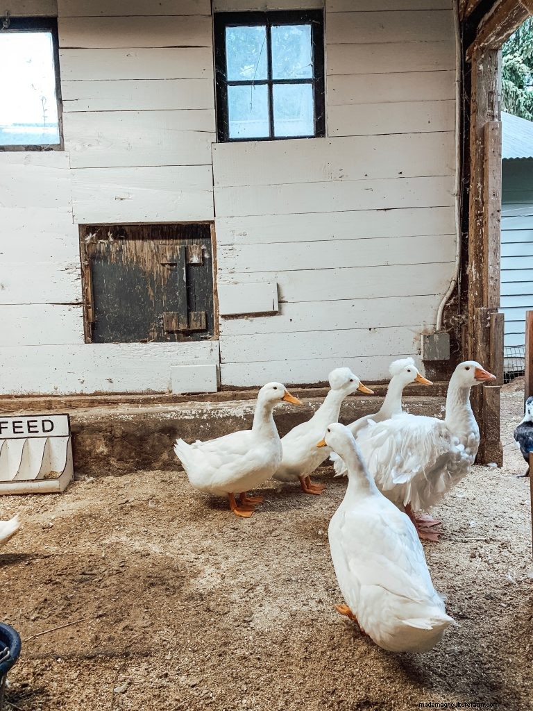 Diet is one facet to consider when looking at the nutritional requirements of geese vs. ducks or chickens. Unlike chickens and ducks, geese do not forage for slugs, ticks, or other insects. Instead, they love to graze on open pasture and tear tender grass blades with their serrated beaks. They’re content to be turned loose in the garden, sampling weeds and unwanted growth between tall cornstalks and rambling strawberry plants. It’s not unheard of for a goose to toy with a garden snake or minnow; however, they much prefer greenery and will most often choose plant-based meals. In addition to grazing, geese will nibble at hay as a source of forage and enjoy cracked wheat soaked in a water bucket. I personally supplement my geese’s diet with dry rolled oats as they provide vitamins B, E, and phosphorous to the goose.