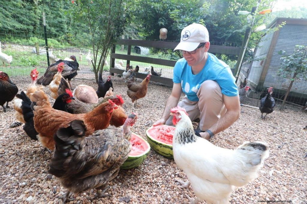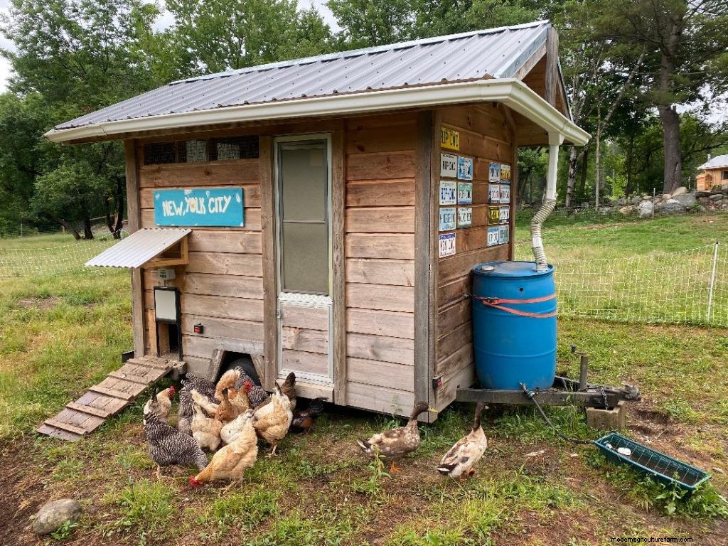 Keep them mobile. Static chicken coops are a thing of the past. We have a large mobile chicken coop on a homemade trailer, four larger chicken tractors, and three smaller chicken tractors. Getting chicks on grass as soon as possible is ideal. And keeping them on fresh grass and off of dirt is better for their health (fresh grass and bugs) and keeps them from getting bored and fighting with each other.