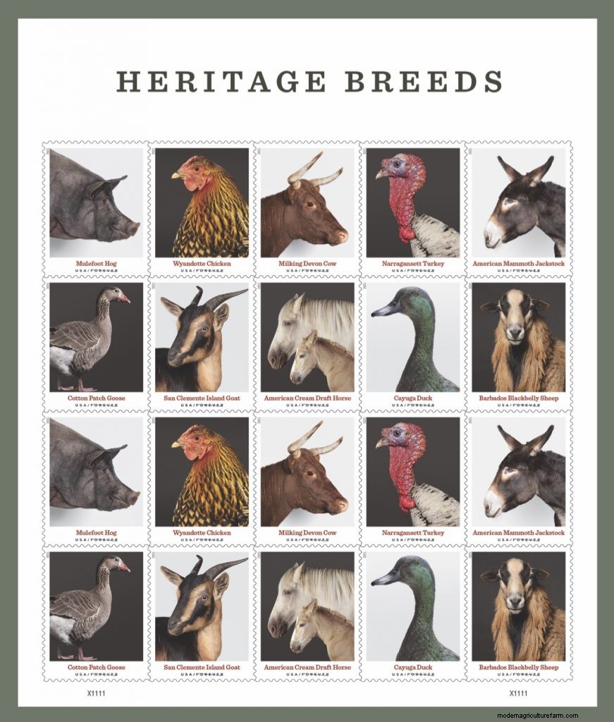 The next time you mail a letter, you can support heritage breeds by stamping it with one of the Heritage Breed Stamps on sale at the post office and through the website starting May 17th. The 10 breeds honored include the Wyandotte chicken, Narragansett turkey, Cotton Patch goose, and Cayuga duck.