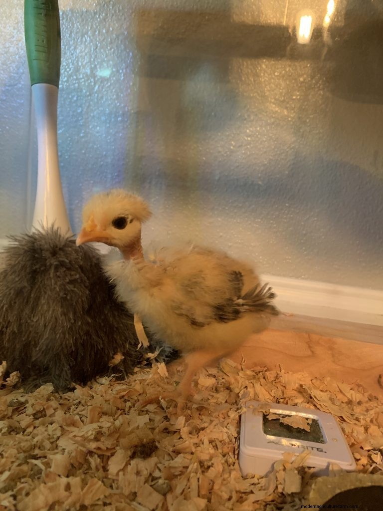 In late November last year, Jett decided to put a chicken egg under Squirt. “I have 35 hens and one rooster. The fertility chances were low, but it was more or less to make Squirt happy,” he reported. He placed the smallest egg he had from his buttercup hen, and all but forgot about it.
