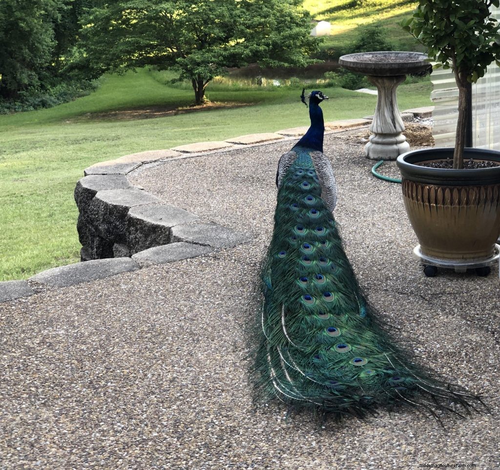 Since no one we knew in our rural neighborhood had peafowl, it was as if this one had fallen from the sky. Since he was a peacock, that could have been close to what happened. We didn’t know.