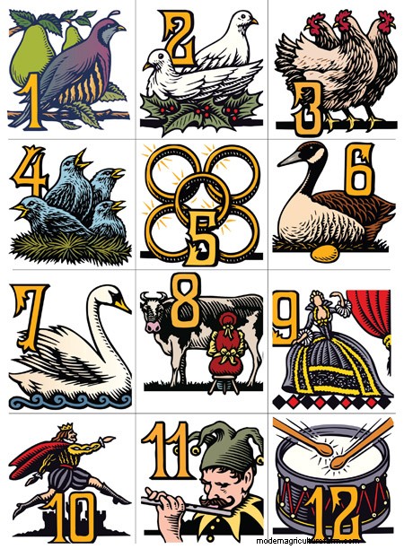 In addition to singing, you may want to create Christmas ornaments for each of the 12 days. Patterns are available from mmmcrafts.