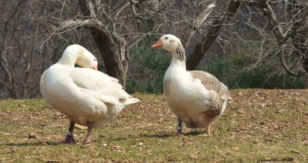 While the geese can become very broody, and display good mothering and fathering abilities, the Krebs have found that they have higher fertility, when kept in pairs compared to a flock.