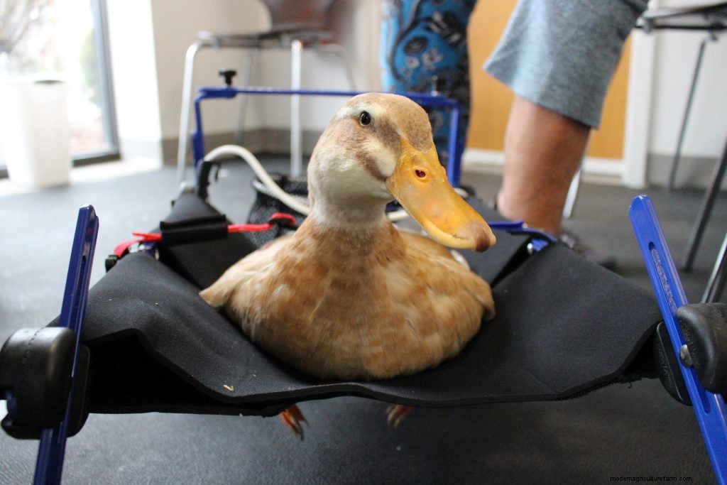 In an effort to “do right” by Elizabeth, Olivia hit the internet and came across the story of a duck named Merlin with a leg defect that left the bird immobile who got a custom wheelchair from Walkin’ Pets by HandicappedPets.com.