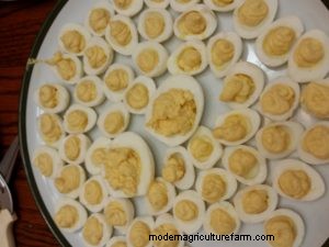 Drain and place eggs in cold water for several minutes. Peel off the eggshells.