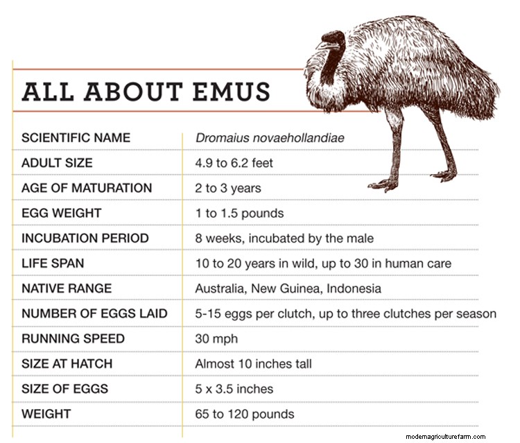Although purchasing younger stock is cheaper (fertile eggs for around $25 and day-old chicks for around $100), emus do not reach sexual maturity until they are two years old.
