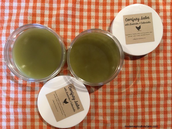 I also keep a jar handy with my gardening tools. I find the comfrey salve helps sooth small scratches on my hands and arms from handling plants. I also smear a little on bug bites.
