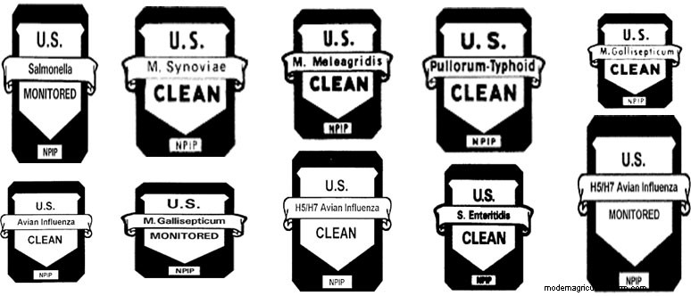 The NPIP was originally formed to combat the prevalent Pullorum disease of the day, but eventually the NPIP broadened the scope of its surveillance program to include the major “vertically transmitted” diseases which are Salmonella pullorum, Salmonella gallinarum, Salmonella enteriditis, Mycoplasma gallisepticum, Mycoplasma synoviae and Mycoplasma meleagridis. These diseases pose a big threat to poultry health, but the real issue is that a vertically transmitted disease comes from the infected parents of the chick in question. If a hen is infected with one of these diseases she can pass it on to her offspring through the egg, much like a human mother can pass HIV, Syphilis or Chlamydia on to her unborn child. For this reason, breeder flocks that take part in the NPIP certification program are tested regularly and NPIP certified hatcheries only receive eggs from certified clean breeder flocks.