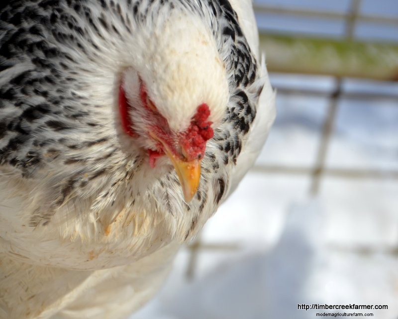 Chickens with large combs and wattles may need extra care to avoid frostbite. These chickens may include the following breeds: White Rocks, Barred Rocks, Australorps, Cochins, Leghorns and Rhode Islands Red. We have a Blue Andalusian with an incredibly large single comb that is quite floppy.
