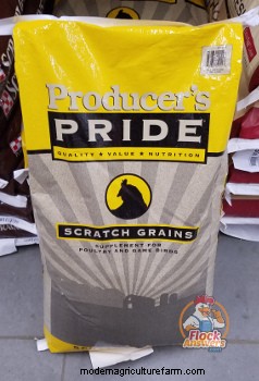Classic scratch feed (not to be confused with a balanced ration) is the chicken’s equivalent of a candy bar. Scratch feed, or scratch grain, is a treat and you must feed it sparingly if at all. Scratch feed has been around since before balanced feed rations existed. Nutritionists have since learned that scratch feed is terrible for birds, but tradition has kept it alive and selling. If you don’t already feed this stuff, then don’t. If you do feed scratch, then feed it sparingly. A 25-pound bag should last 10 hens a year or more in my opinion.
