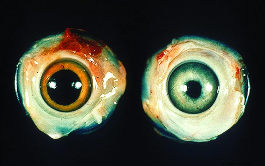 Birth defects involving chicken eyes are relatively common, but they are usually caused by incorrect artificial incubation, not genetics. Serious deformities can be debilitating or associated with other structural or mental disorders that result in poor quality of life for affected chickens. However, many chickens with minor eye defects live happy, productive lives, though as a precautionary measure they should never be allowed to breed.
