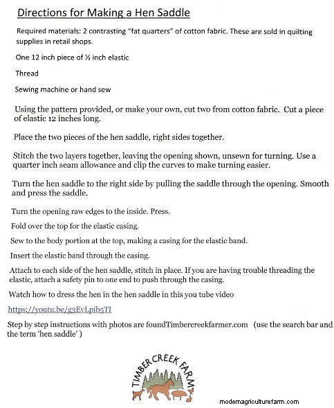 Here are the Instructions for Making a Simple Hen Saddle that I Tried Previously