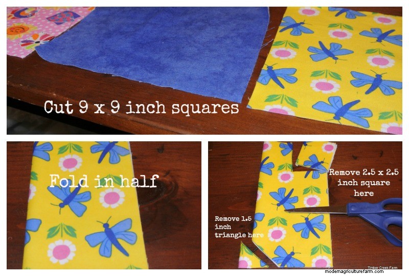 9 x 9-inch piece of heavy cotton, or baby flannel. The baby flannel will not fray much and a lightweight fleece will work for this too.