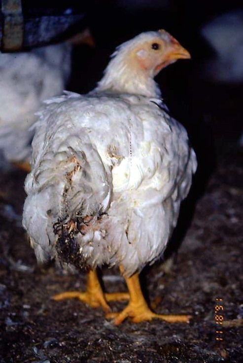 Intestines are made up of epithelial cells whose job is to collect the nutrients and water necessary for survival before it passes from the body. It is in these cells where the oocysts grow and reproduce, causing significant trauma. Lesions appear as the oocysts destroy these cells, leading to the primary sign of coccidiosis: Mucous and blood in the stools. If the infection is bad enough the bird will be losing a significant amount of blood, which is the rationale behind the pale comb and skin. The amount and severity of lesions present are directly related to how many sporulated oocysts the bird has ingested.