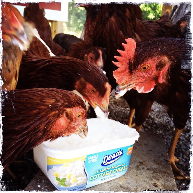 Like eggs, yogurt and cottage cheese provide good protein as a treat for baby chicks. Yogurt also supports good gut health with all its probiotics. Cottage cheese is a favorite of our birds, young and old. They do make a mess but have so much fun diving in for the curds!