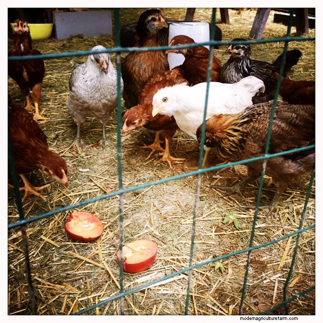 Chicks enjoy a wide range of fruits and vegetables. Some favorites among our birds are bananas, tomatoes, strawberries, watermelon, apples, grapes, lettuce, cucumbers, squash and kale. Again, keep in mind the size of your young birds. Softer items might be okay to throw in whole (watermelon or ripe stone fruit) and let the chicks pick off pieces, but tougher items should be cut up into appropriately sized pieces. When in doubt, cut it up.