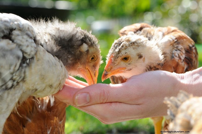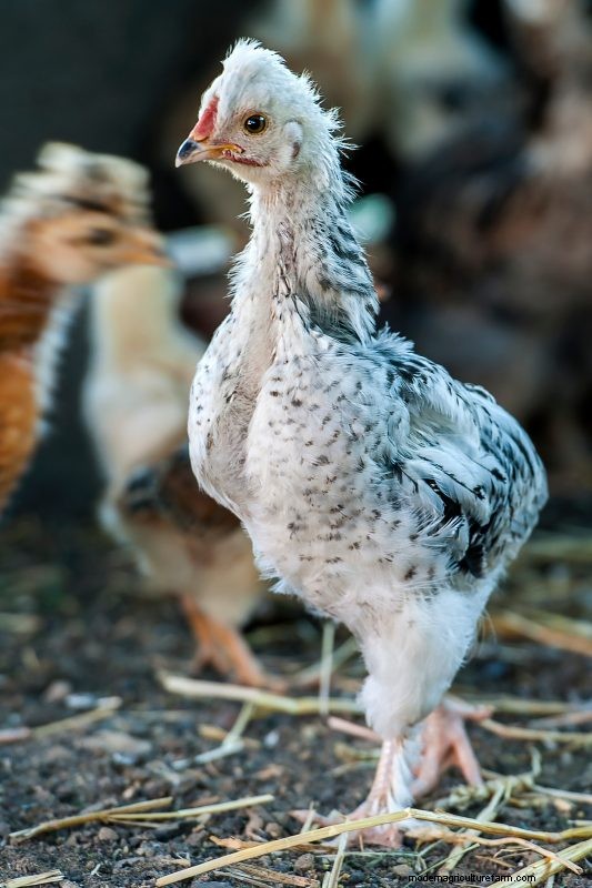 The most important factor in helping your chick to grow healthy feathers is by feeding them properly. The best way to do this is by using a commercially prepared “chick starter” feed. This feed in particular is higher in protein (20-22 percent protein versus 16-18 percent for grown chickens), lower in calcium (1 percent calcium versus 3 percent for laying hens), and is in very small pieces or almost a powder. Chick starter should be fed until a chick is six weeks old (eight weeks for those breeds that feather at a later age) at which point you should switch to a grower feed mix. This grower feed mix has 16-18 percent protein but still does not have the extra calcium that laying hens need. The higher percentage of protein in the chick starter is essential for the formation of feathers. Feathers are made of protein, and if the chick does not have sufficient protein in their diet, they cannot make healthy feathers.