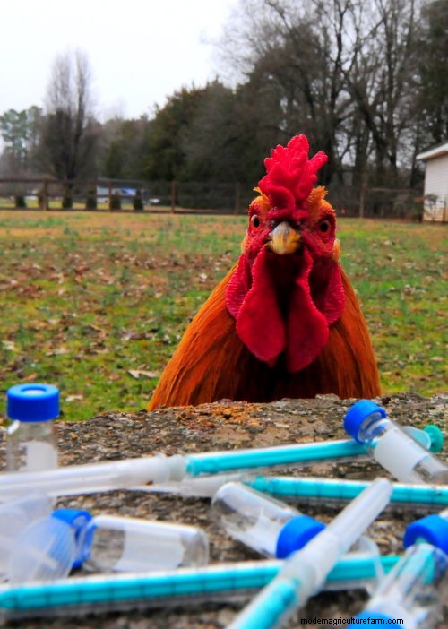 There are a multitude of vaccines on the market but only a few of them are serious considerations for small flock owners. It isn’t practical or advisable to vaccinate for every potential illness. Some diseases, such as Fowl Pox, should only be vaccinated against if there have been outbreaks in the area. My vaccine list includes Marek’s, Newcastle, and Infectious Bronchitis. You may also consider adding Infectious Bursal Disease.
